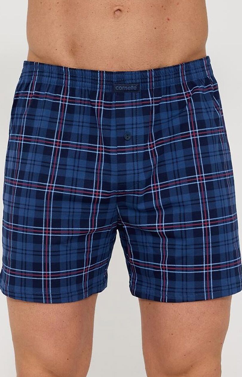Bokserki męskie o luźnym kroju wykonane z wysokiej jakości bawełny, zapinane na guzik. W pasie wygodna guma w tunelu. Bokserki w klasyczny wzór w kratkę. Luźny krój i przewiewny materiał zapewnia komfort i swobodę ruchów.